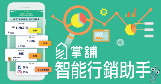 有見及此,我們隆重推出智能行銷助手,讓商戶不需分析 Google Analytics 複雜的數據,在 掌舖 Boutir 應用程式內也可以看到網舖數據。現時是第一階段,我們會推出總銷售額、未結賬的購物車數量、訪客人數、最熱門產品、訪客來源。