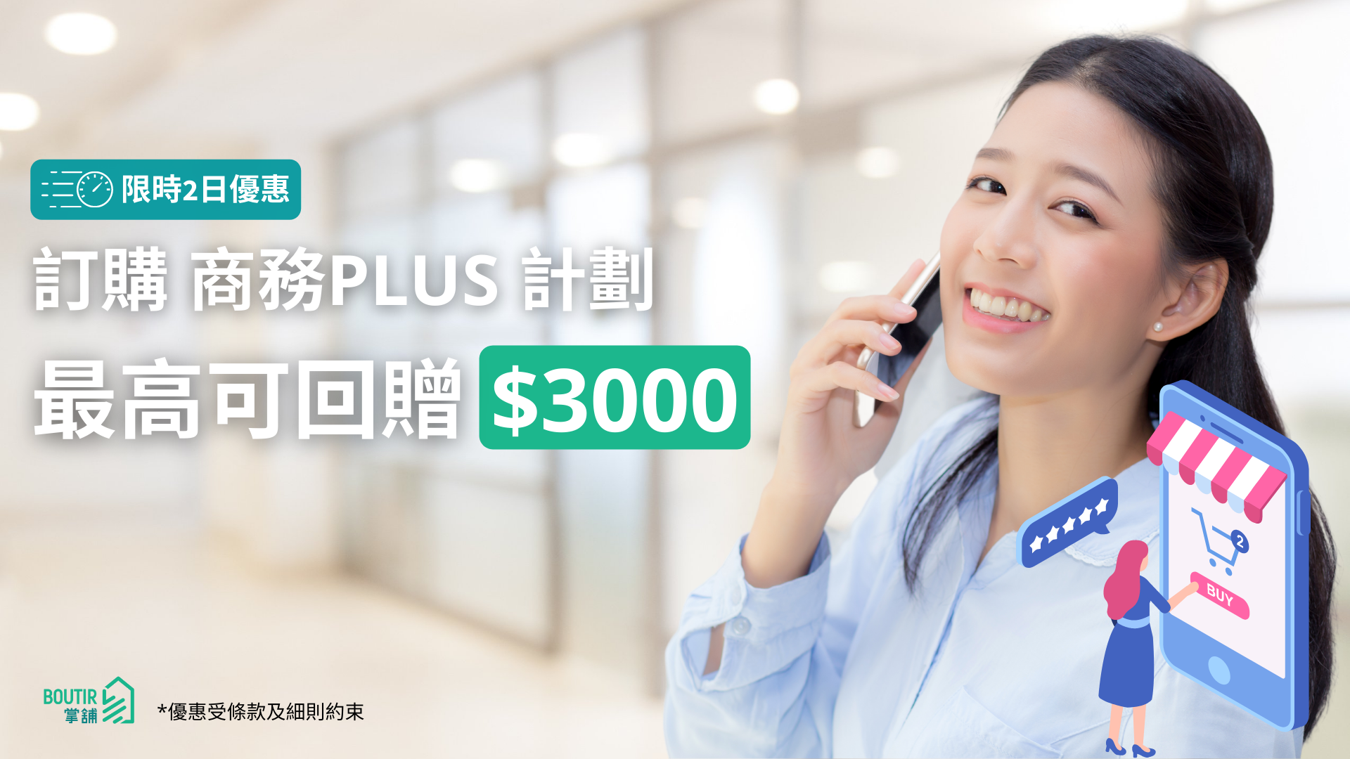 【限時優惠】訂購 一年 商務 PLUS 計劃,最高可回贈 $3,000!