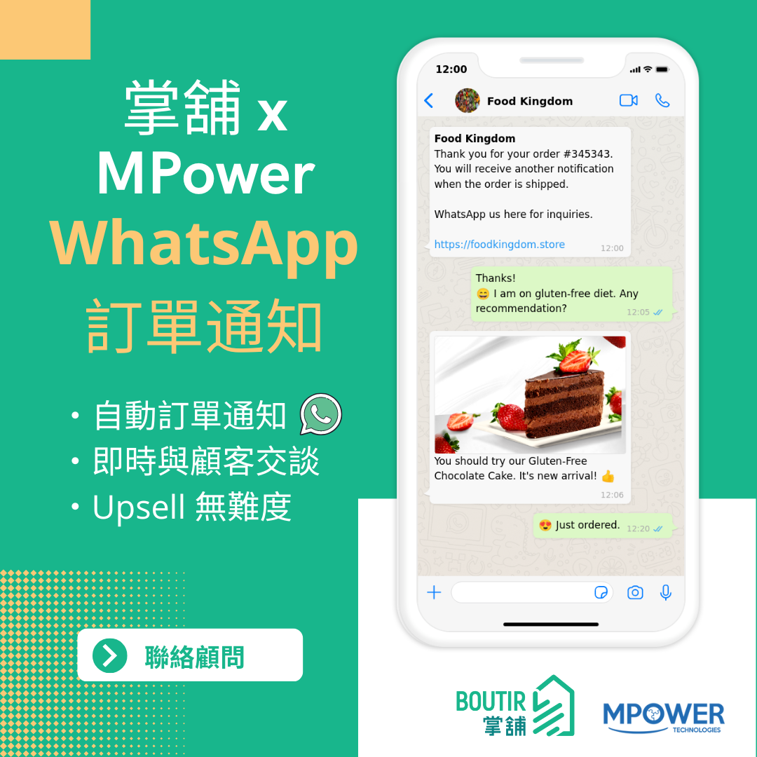 物色入貨方式之餘,還在考慮選用那個網店平台?掌舖推出全新「進階計劃」,只需一部手機,就能隨時隨地管理訂單與庫存,還設有多元設計模板與完善會員積分制度,兼讓各位無需額外成本和編程技術,即可把網店變成品牌專屬APP!想了解更多?立即按此預約掌舖一對一諮詢服務吧!