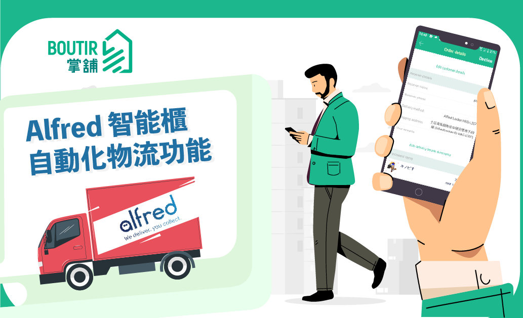 存貨及訂單 操作教學【操作教學】掌舖 Alfred 智能櫃 自動化物流功能updated on 2022 年 10 月 13 日2020 年 7 月 9 日 為了讓商戶能夠更方便、快捷處理物流,「做少啲,賺多啲」!掌舖優化 Alfred 智能櫃 物流的功能,讓你的商品於寄貨後能自動化送到顧客手上,省去平日寄貨後仍要擔憂的情況。 如你有興趣使用 Alfred 智能櫃 自動化物流功能,請填寫報名表格,我們將於5個工作天內有專人聯絡你!