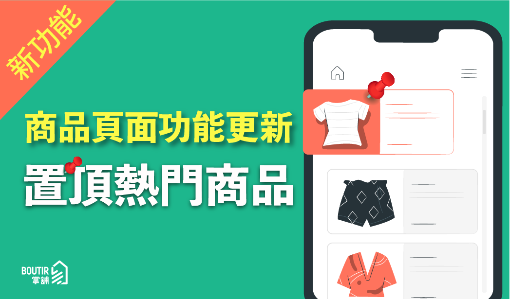 存貨及訂單 操作教學 準備開舖【操作教學】置頂商品功能 | 讓客人一眼知道熱門商品!updated on 2022 年 10 月 13 日2021 年 1 月 14 日 「置頂商品功能」已在掌舖手機應用程式面世!此功能是適用於所有計劃用戶!透過置頂「熱門商品」或者是「促銷的商品」,刺激銷售!讓客人每次進網舖都可以即時看到!