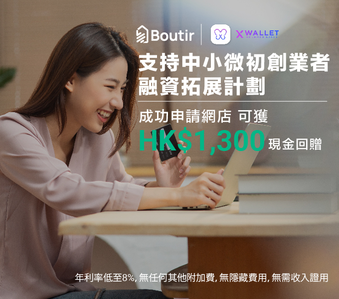 活動掌舖Boutir x X Wallet 支持中小微初創業者融資拓展計劃updated on 2022 年 11 月 11 日2022 年 11 月 11 日 有網上創業夢但資金不足?想擴展網上業務但因財務問題而綁手綁腳?掌舖 x X Wallet可以幫你一把!現已推出「支持中小微初創業者融資拓展計劃」,由11月11日至2023年1月31日,以優惠碼「BOUTIR」申請X Wallet融資,成功申請即可獲得優惠!