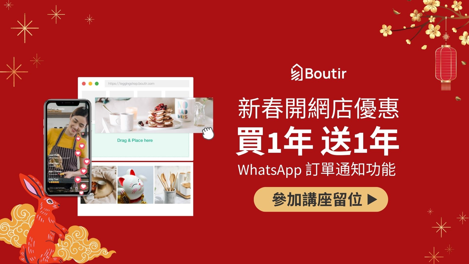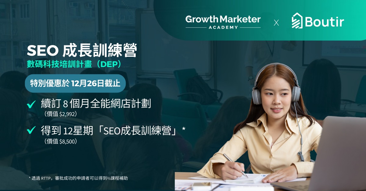 活動掌舖12月網上講座優惠updated on 2022 年 12 月 12 日2022 年 12 月 7 日 由即日起至12月29日,凡參加掌舖網上講座,即可獲得年費折扣優惠,低至 半價! 所有 S 字頭網店平台商戶轉會至 掌舖 更可免 3 個月月費,再送「無痛轉會」。 報名參加網上講座:https://www.boutir.com/HK/zh-Hant/resource/#workshop