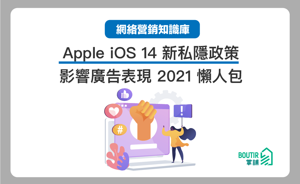 Facebook 專區 Instagram 專區 推廣及宣傳方法【商家懶人包】Apple iOS 14 新私隱政策將會影響 Facebook 廣告表現 以及 解決方法!updated on 2022 年 11 月 23 日2021 年 2 月 16 日 Apple iOS 14 新私隱政策將會影響 Facebook 廣告表現,掌編當然和Facebook了解最新系統的情況。不過相信不少商家都想了解為什麼要出現新的私隱政策,以及私隱政策一出,各位商家應該如何對應!