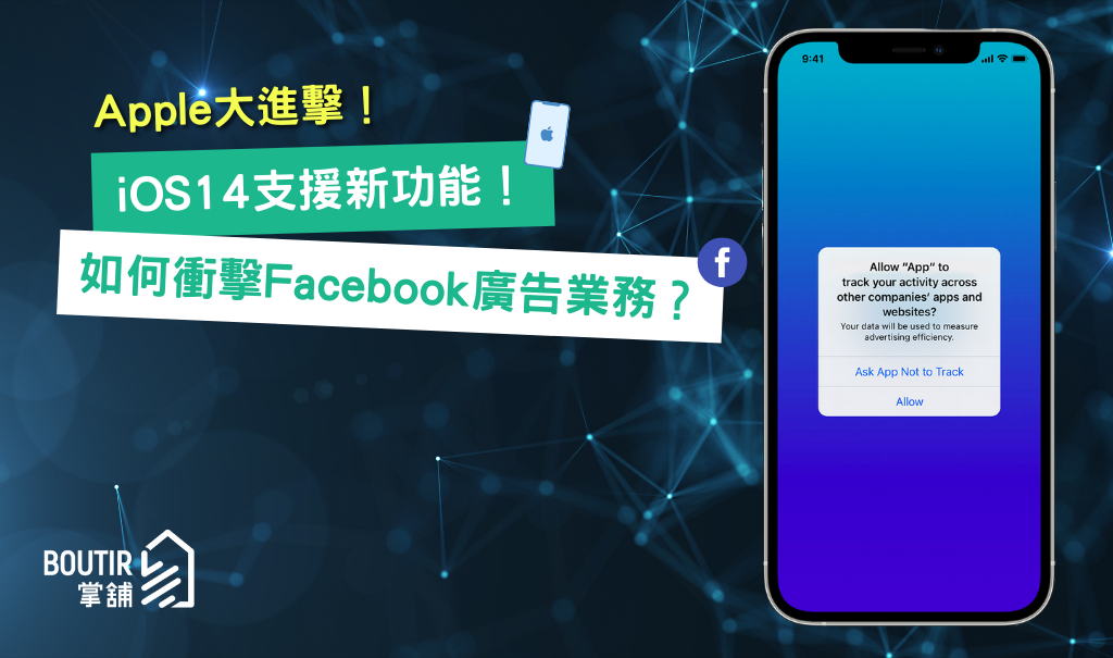 Facebook 專區 Instagram 專區 專欄重溫 社交媒體專區【隱私權爭拗】Apple大進擊!iOS 14新功能如何衝擊Facebook廣告業務?updated on 2022 年 11 月 23 日2021 年 2 月 23 日 去年 Apple 宣布更新用戶私隱和數據使用政策,將在 iOS 14 系統增設「應用程式追蹤透明化」(App Tracking Transparency,ATT)機制。Facebook 表示強烈反對,不但就此在美國多份報章刊登全版廣告,稱該功能會令個人化廣告收益下降,為中小企帶來嚴重影響,最近還主動採取對策,測試在該功能發出追蹤許可通知前,就在 Facebook 和 Instagram 彈出提示,讓用戶充分了解個人化廣告的細節後,才決定是否允許 Facebook 追蹤用戶。究竟這次更新如何影響 Facebook 廣告業務?正在經營網舖的各位,需要作出甚麼措施,減低這功能帶來的影響?